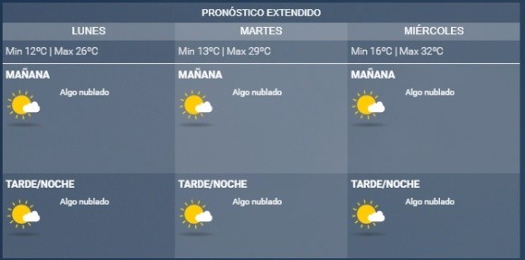 El lunes seguirá con las mismas condiciones y una mañana fresca: la mínima arrancará de 12 grados y la máxima llegará a 26.