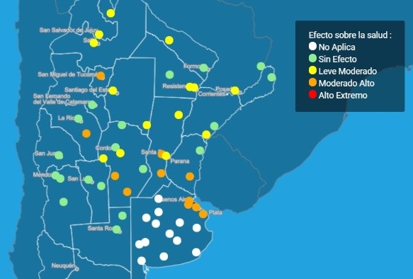 En tanto, había otros 14 puntos del país en alerta amarilla –efecto leve-moderado sobre la salud–, lo que también puede suponer riesgos para sectores más sensibles como bebés y niños pequeños, mayores de 65 años y enfermos crónicos.