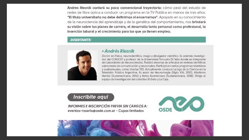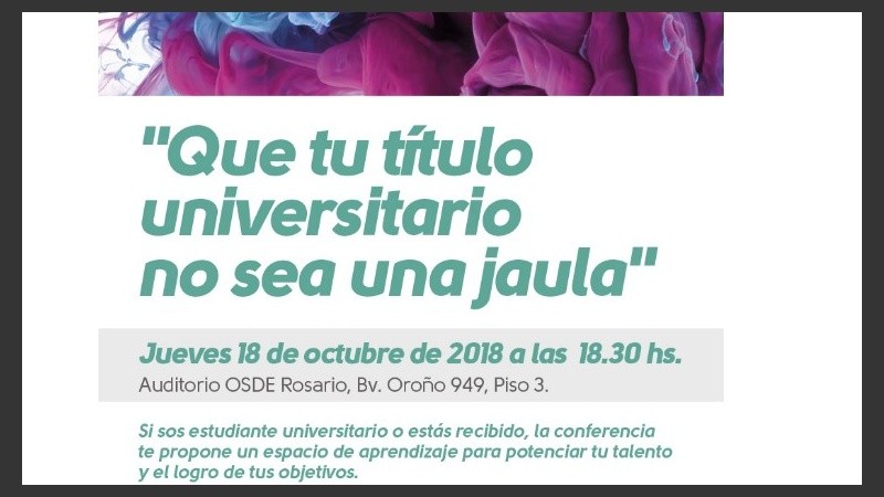 Destinada a estudiantes universitarios o jóvenes graduados, la conferencia "Que tu título universitario no sea una jaula", de Andrés Rieznik, propone un espacio de aprendizaje para potenciar el talento y el logro de objetivos.