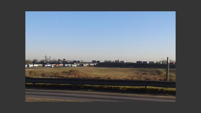 También había camiones en la ruta A012 por encima del puente de la autopista Rosario-Santa Fe y e a los costados de la traza, incluso donde comienza la autopista.