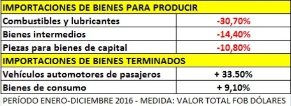 Entre enero y diciembre del año pasado, creció un 33,5 por ciento la cantidad de vehículos automotores de pasajeros importados y 9,1 por ciento los bienes de consumo.