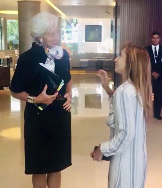 Lagarde fue muy amable con la actriz y hasta llegaron a compartir un breve diálogo.