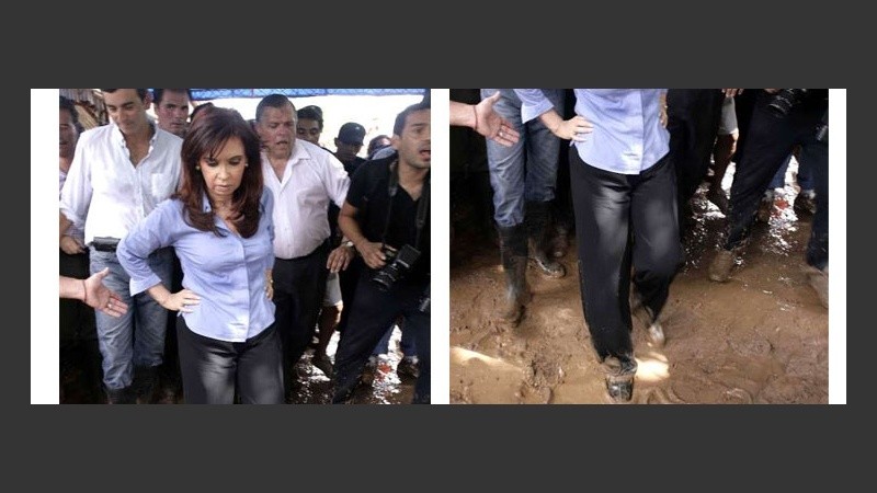 La Presidenta sobrevoló la zona afectada por el alud y las inundaciones, y realizó una recorrida terrestre que duró unas dos horas y media, en la que habló con los habitantes de Tartagal (ver fotos).