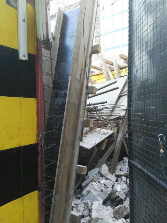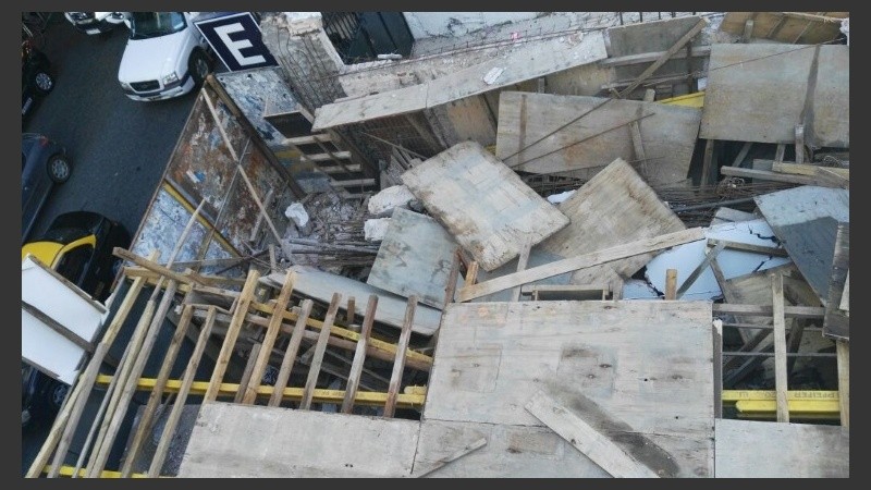 Se desplomó gran parte de la estructura que se levantaba en ese sector de la ciudad, donde antes funcionaba un conocido bar. También se cayeron los andamios que utilizan los obreros.
