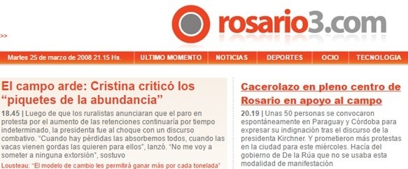 Marzo de 2008, el conflicto campo - gobierno en portada (archive.org)