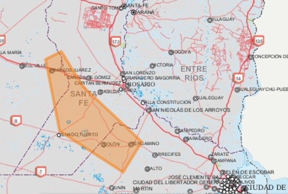 De hecho, a las 16 emitió una advertencia por la presencia de fenómenos intensos que llegarían en las próximas horas al sur oeste de Santa Fe. Incluye a los departamentos Belgrano, Caseros, Constitución, Gral. López, Iriondo y San Lorenzo.
