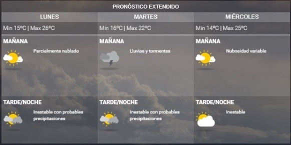 El último parte climático anuncia para lo que resta de la jornada nubosidad variable con probabilidad de chaparrones. Mejorando hacia la tarde o noche, con máxima de 25 grados.