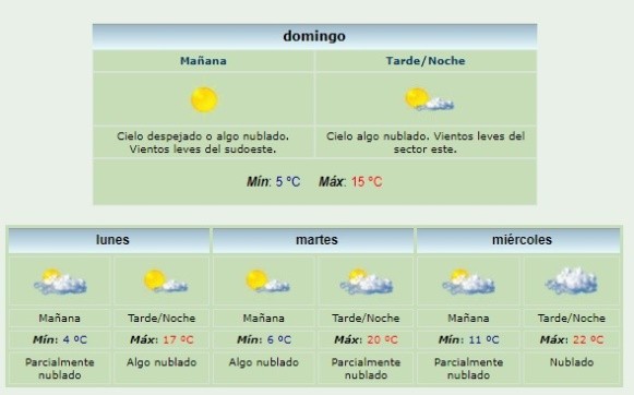 En tanto, para este lunes feriado se espera un aumento de la nubosidad con mínima de 4 grados y una máxima de 17.