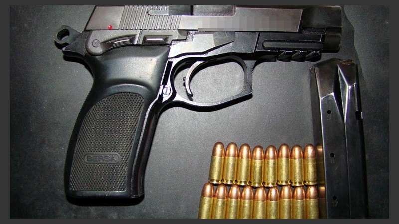 Además, incautaron una pistola calibre 9 milímetros marca Bersa con 17 municiones y otra pistola calibre 9 mm con 10 municiones en el cargador, teléfonos y 11.230 pesos de dinero en efectivo.