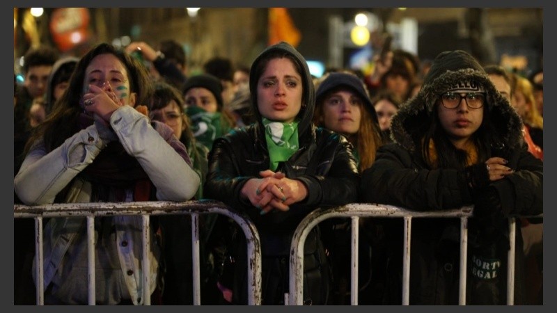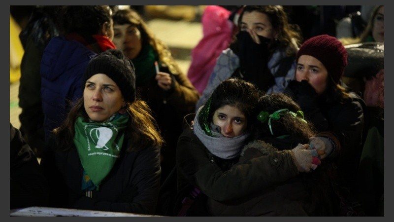El aborto seguirá siendo clandestino en Argentina, a pesar de los votos a favor cosechados entre los diputados y senadores nacionales. La noticia fue la gota que rebasó un vaso cargadísimo de agua. Del lado pro legalización del aborto, el tiempo inclemente no había logrado devolver a nadie a su casa y a pesar de que la intemperie se convirtió este miércoles a la noche en un lugar imposible, la llamada marea verde resistió hasta el final. Embarradas, congeladas y fatigadas por una jornada iniciada al amanecer en muchos casos, las "pibas" -y también los "pibes"- ocuparon las calles a pura fogata. Se adueñaron de los portales, se refugiaron en edificios y bares, algunas hasta levantaron pequeñas carpitas en los contornos de la plaza del Congreso. Pero sobre todo, se mostraron bien nutridas de un convencimiento cabal en que su insistente permanencia ahí y ahora tenía un significado trascendental para este 8A.