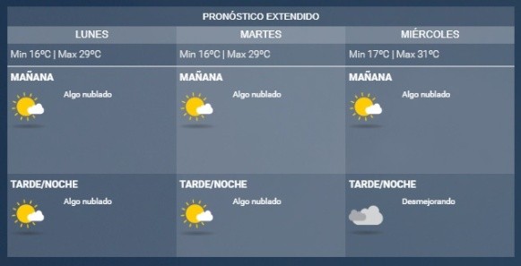 Este lunes, día de Nochebuena, se mantendrán las mismas condiciones con mínima de 16 grados y máxima de 29 grados.