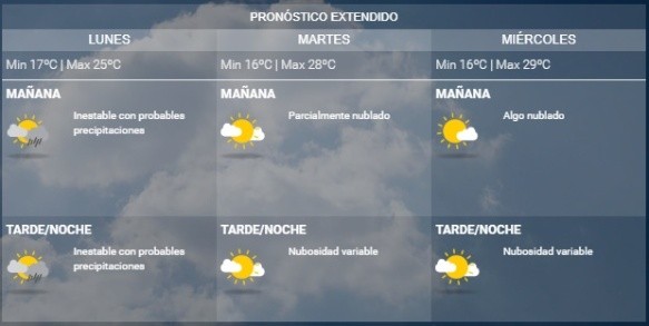 El lunes seguirá inestable, con probables precipitaciones. La mínima arrancará de 17 grados y el termómetro no superará los 25 grados a la tarde.