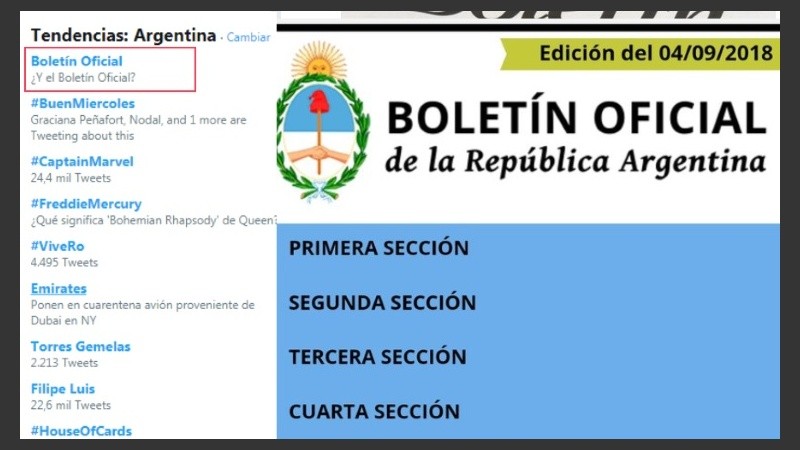 La cantidad de especulaciones e ironías sobre el tema convirtieron a Boletín Oficial en primera tendencia del día en Twitter. La red social tomó nota y creó un "Momento": “¿Y el Boletín Oficial?”, para agrupar esas publicaciones.