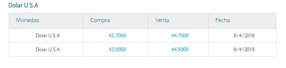El dólar minorista bajó este martes 20 centavos y cerró a $44,50, según la cotización del Banco Nación. Se trata de la segunda baja consecutiva, ya que este lunes se había ubicado en $44,70 contra los $44,90 del viernes pasado. En tanto en el segmento mayorista la divisa retrocedió 35 centavos y finalizó a $43,35.