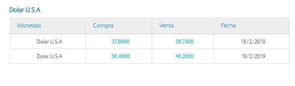 En el Banco Nación la divisa norteamericana cotizó a $38,40 para la compra y $40,20 para la venta.