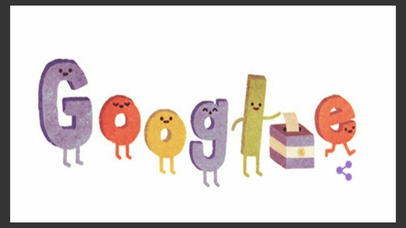 Las letras del buscador simulan ser votantes que depositan su voto en una urna. También aparecen los colores de la bandera argentina.