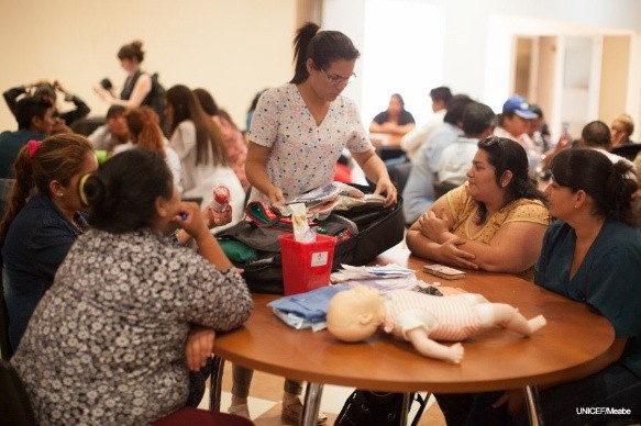 Gracias a la donación de la Fundación Leo Messi, los agentes sanitarios recibieron mochilas que contienen todos los elementos indispensables de asistencia básica y de emergencia para poder realizar las visitas a la comunidad. Este equipamiento fue entregado a quienes participaron de las capacitaciones sobre enfoque de derechos, género e interculturalidad en la atención de embarazadas y recién nacidos realizadas por el Ministerio de Salud de la Provincia y UNICEF.