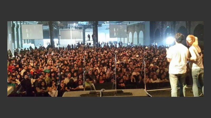 El festival solidario en beneficio de las víctimas de la explosión de Salta 2141 se desarrollaba a salón lleno este lunes en el salón Metropolitano, donde a media tarde se cerró el ingreso de gente porque se colmó la capacidad de 11 mil espectadores parados.