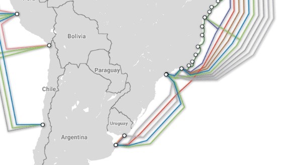 Algunos de los cables de internet abarcan varios países de América. Hay uno que parte de Las Toninas, provincia de Buenos Aires, y conecta con Brasil, Uruguay y luego hacia el norte hasta Puerto Rico.