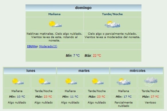 Según el Servicio Meteorológico Nacional (SMN) este domingo tendrá una máxima de 22 grados con cielo algo o parcialmente nublado.