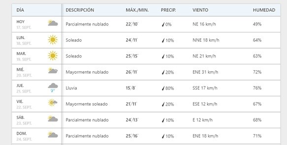 Pronósticos más extendidos, como el de Weather Channel, indican que el jueves 21 de septiembre podría estar inestable.