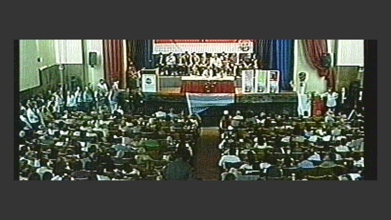 El acto de la convención nacional del radicalismo comenzó este viernes pasadas las 18 con el himno nacional y la marcha radical. El encuentro fue encabezado por el ex presidente Raúl Alfonsín, que llegó minutos antes del inicio a la sala de Luz y Fuerza de Rosario y por los principales dirigentes del partido. Quienes pegaron el faltazo, como ya habían anunciado, fueron los radicales K.