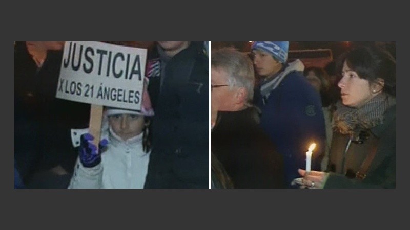 Hombres, mujeres y también algunos chicos con pancartas con fotos de las personas fallecidas en la tragedia y velas eran las primeras imágenes que se pudieron ver, minutos después de las 20 en el Monumento a la Bandera.