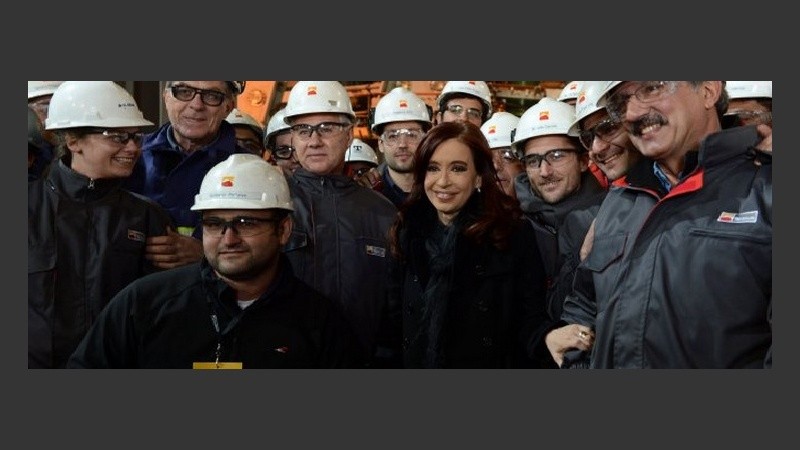 La presidenta estuvo acompañada por el vicepresidente Amado Boudou, el gobernador bonaerense Daniel Scioli y el viceministro de Economía Axel Kicillof, además del empresario Paolo Rocca, titular de Techint.
