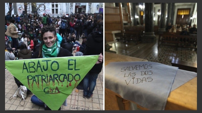 En tanto, la campaña local que rechaza el proyecto de ley que debate el Congreso no organizó actividades especiales en Rosario este miércoles –el domingo ya hubo una nutrida movilización– pero la postura se manifestaba con fuerza en iglesias.