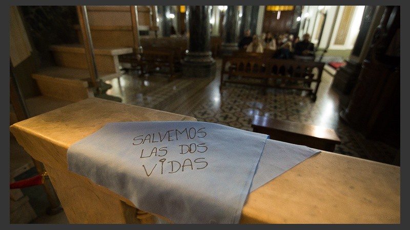 En diferentes parroquias de Rosario pueden verse desde hace varios días carteles alusivos al tema, donde se defiende la preservación de “las dos vidas”, pero durante esta jornada especial se pudo ver un número algo mayor al habitual de fieles rezando y también la presencia de pañuelos celestes, que simbolizan la negativa a la ley.