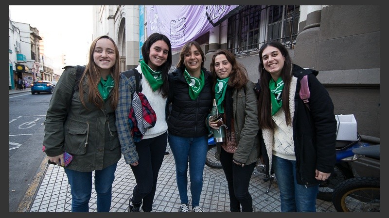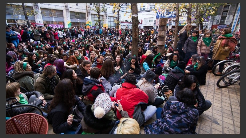 La principal concentración de pañuelos verdes, el color que identifica a la Campaña por el aborto legal, seguro y gratuito, se desarrollaba en la Facultad de Humanidades y Artes de la UNR (Entre Ríos 758).