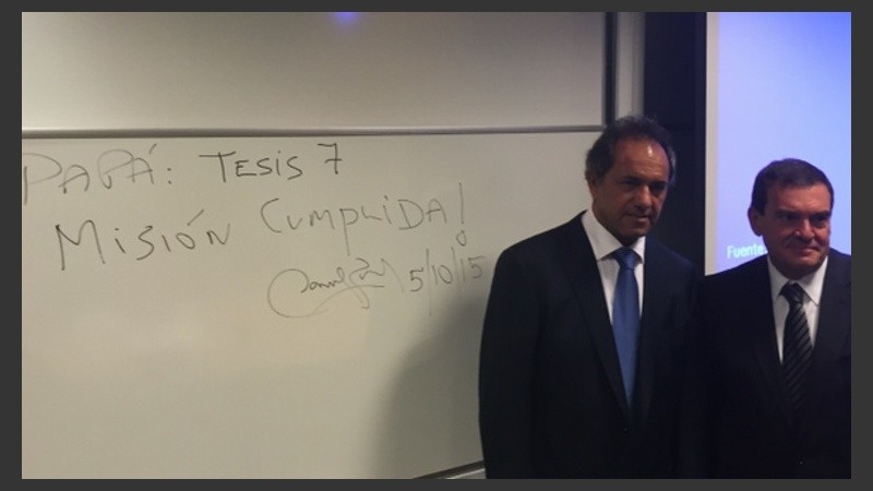 Desde la casa de estudios privada, Scioli reveló su logro a través de su cuenta de la red social Twitter.