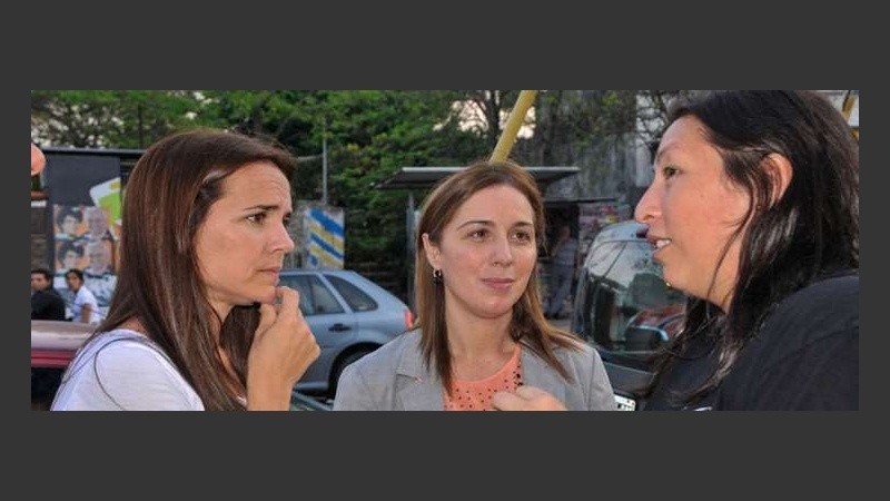 La candidata a concejal de Unión PRO Santa Fe Federal Anita Martínez y la vicejefa de Gobierno de Buenos Aires, María Eugenia Vidal recorrieron el centro comercial de Empalme Graneros.