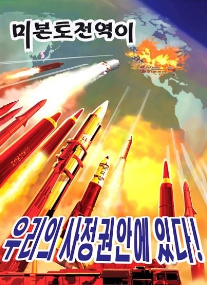 Medios de comunicación estatales de Corea del Norte difundieron una serie de carteles en los que retratan a Estados Unidos en llamas como consecuencia de un ataque con misiles norcoreanos.