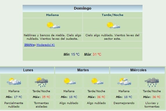 La tregua del calor tiene las horas contadas. Aunque la mañana de este domingo arrancó agradable y la máxima no superará los 31 grados, se aguarda una semana calurosa e inestable.