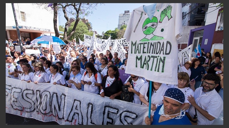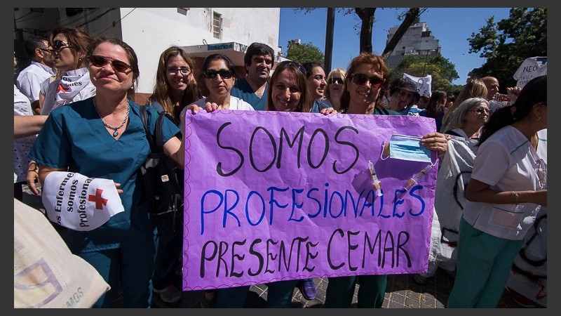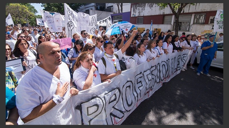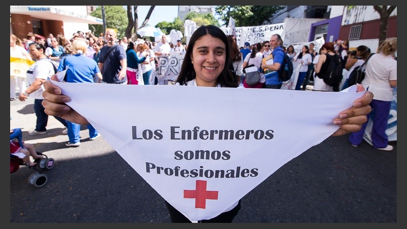 Trabajadores de hospitales y sanatorios se movilizaron para visibilizar sus reclamos con pancartas que decían “los enfermeros no somos personal administrativo, somos profesionales de la salud”.