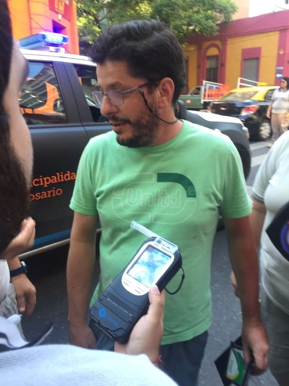 Finalmente sopló y le dio 2.17 gramos del alcohol en sangre. Para cualquier automovilista común el máximo permitido es 0,5 y para un conductor de un servicio público cero.