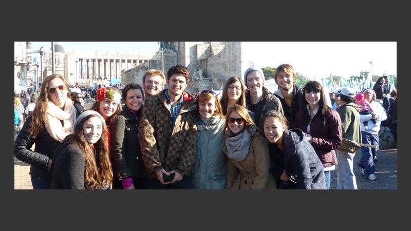 Como hoy no tenía clases, la profesora de Lengua y Literatura llevó a Ethan y su grupo al Monumento. Se lo ve exhultante en medio de tanta diversidad, aunque lamenta no ver a Cristina. "Una lástima perdernos a la presidenta", agrega.