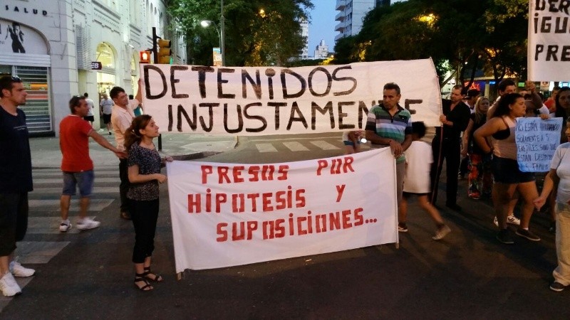 En la marcha de este lunes, las personas que concurrieron llevaban carteles pidiendo que “busquen a los verdaderos culpables” y manifestando que están “presos sin pruebas”.
