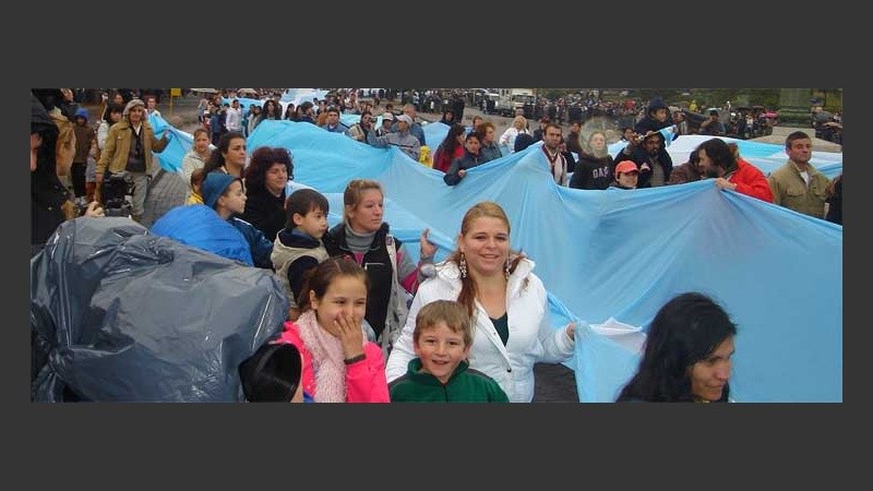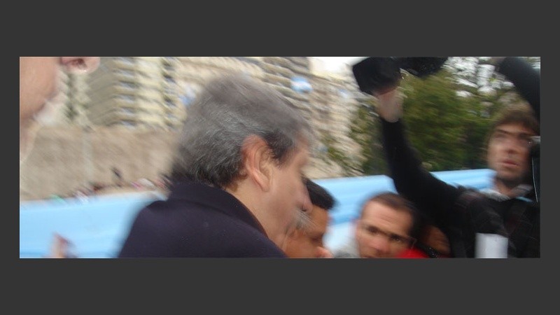 Sin embargo, la nota se dio debajo del escenario. Es que cuando pasó la bandera más larga del mundo –-sin dudas el “hit” de la jornada- bajaron para tomarla no sólo el gobernador de Santa Fe sino también el ministro nacional. Sin quedarse atrás, bajaron desde el intendente hasta el ministro Antonio Bonfatti y el senador Rubén Giustiniani. Incluso se pudo ver llevando la celeste y blanca a Marcos Escajadillo, a cargo de la Defensa Civil de Santa Fe.