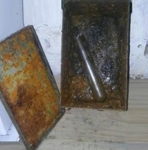 Lo que encontraron fue una especie de bandeja de metal, muy oxidada, que contenía una cápsula de vidrio con viejos papeles adentro. Podría ser que los viejos pobladores de Zavalla, quizás los del Centenario de la patria en 1916, tuvieron la misma idea que los actuales y dejaron el objeto para las generaciones futuras.