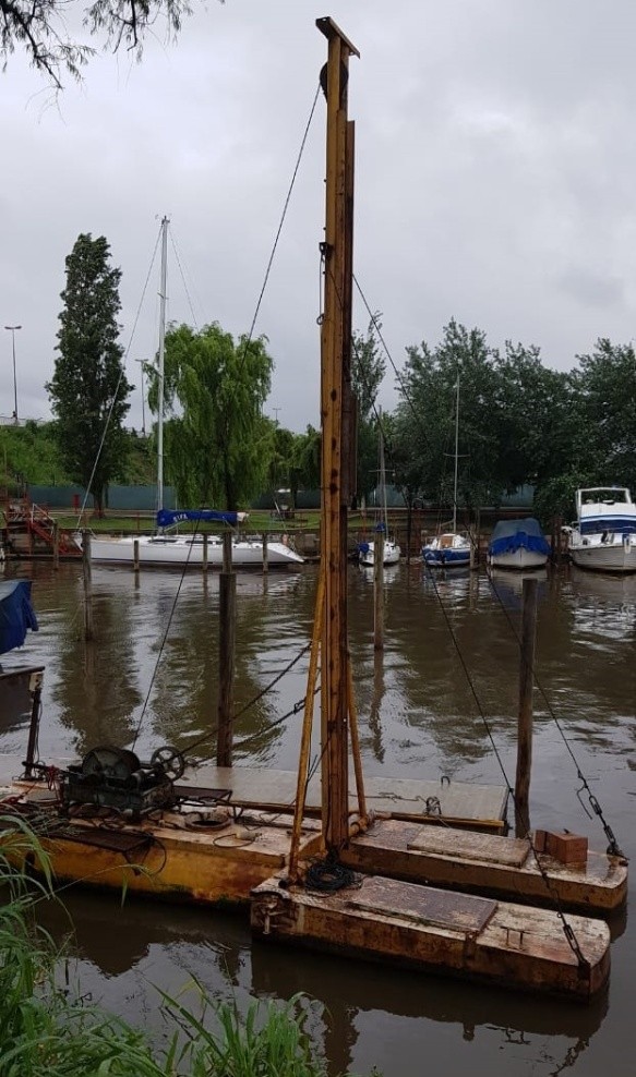 Los trabajadores lograron sacar la lancha del agua y la ubicaron sobre soportes en tierra, tras lo cual una grúa de tipo acuática denominada “pilotero”, al parecer mal apoyada en tierra, cayó sobre el joven y lo dejó inconciente.