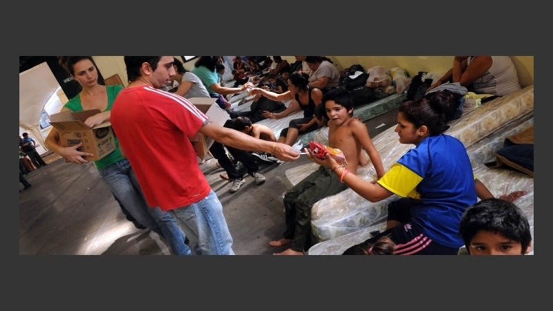 El agua se llevó la heladera, los muebles y la cama. Sin poder frenar la corriente ladrona, muchos vecinos de la zona norte y oeste de Rosario debieron despedirse de sus pocas pertenencias. Bajo la lluvia, con hambre y frío, buscaron refugio en donde supo funcionar la Sociedad Rural del Parque Independencia. Este jueves sumaban unos 500 entre mujeres y niños. Son los evacuados de la ciudad y recibían este mediodía comida y ropa de la Secretaría de Promoción Social. Al menos, al mediodía, había un aliciente: las aguas bajaban en forma sostenida y se alejaba el riesgo de desborde de los canales y arroyos que desembocan en el río Paraná. A las 15.45 el secretario de Gobierno de la Municipalidad, Fernando Asegurado, se mostró convencido de que lo peor había pasado y dijo que algunos de los evacuados comenzaban a volver a sus casa.