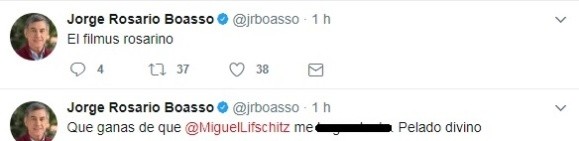 Pasadas las 14, el ciberataque comenzó al definir al edil como "El filmus rosarino" (en relación al dirigente kirchnerista de Buenos Aires) y siguió con agravios no sólo a Boasso, también se metió con el gobernador Miguel Lifschizt.