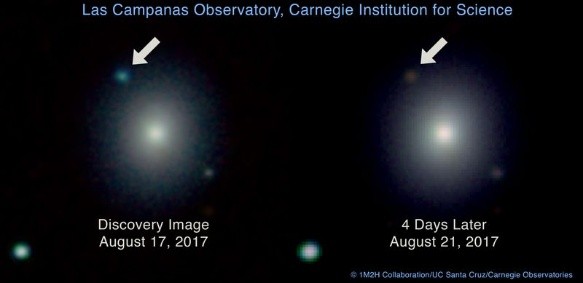 Se estima que las ondas gravitacionales detectadas en agosto fueron emitidas a unos 130 millones de años luz de distancia, lo que lo convierte tanto el evento de ondas gravitacionales como la explosión de rayos gamma más cercanos detectados hasta ahora.
