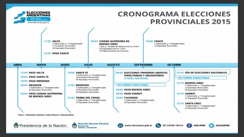 La Cámara Nacional Electoral manifestó su "honda preocupación“ por "las dificultades de orden institucional, jurídico y material que genera el hecho de que las provincias lleven a cabo sus comicios en forma separada de los procesos electorales nacionales“. Este domingo, se elegirán autoridades ejecutivas y legisladores en la Ciudad de Buenos Aires, Córdoba y La Rioja. En Corrientes habrá comicios legislativos y en La Pampa se disputarán primarias.
