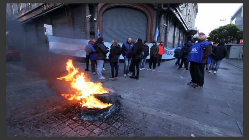 Por su parte, la Asociación Empleados de Comercio de Rosario realizó una concentración en Córdoba y Sarmiento con quema de neumáticos. También recorrió el centro “para monitorear que no haya trabajadores obligados a trabajar".