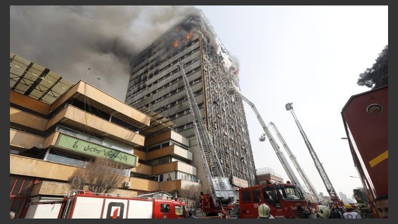 Un edificio de 17 plantas del centro de Teherán (Irán) se incendió y derrumbó este jueves. Entre los escombros se encontraron los cuerpos de al menos 20 bomberos.