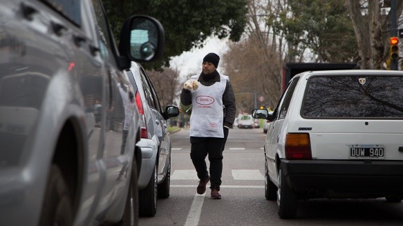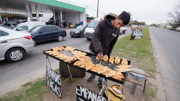 Frente a él, en el otro cantero central de 27 y Avellaneda, Brian no tiene la experiencia suficiente para comparar datos. Salió a vender empanadas turcas a 25 pesos (13 pesos para él) la semana pasada. Se quedó sin trabajo. Hacía carpintería y armadura en obras. Ganaba 16 mil pesos por mes pero eso se terminó.