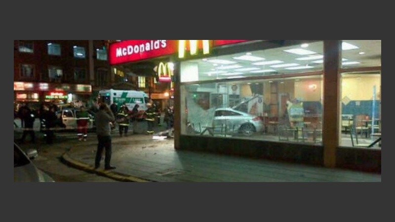 Y como si eso fuera poco, debido al impacto, el Audi patinó y chocó contra la fachada del local de comidas rápidas de Santa Fe y Godoy Cruz. A su paso, rompió vidrios, mesas y sillas.